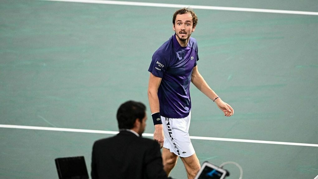 Daniil Medvedev không giữ được bình tĩnh, sau khi thua Alex De Minaur 4-6, 6-2, 5-7 tại vòng hai Paris Masters hôm 2/11.