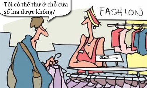 - Thưa bà, bình thường thì có thể được. Nhưng do cửa hàng dạo này buôn bán ế ẩm quá, nếu bà thay đồ ở cạnh cửa sổ chúng tôi e rằng lại mất đi một số lượng lớn khách hàng nữa.