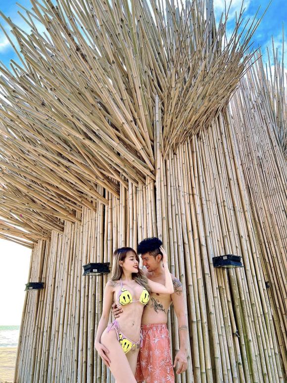 Như thường lệ Ngân 98 chọn cho mình bikini bé tẹo tao với mình mặt cười vừa vui nhộn vừa nóng bỏng. Bên cạnh cô. Lương Bằng Quang cực lực lưỡng và vạm vỡ.