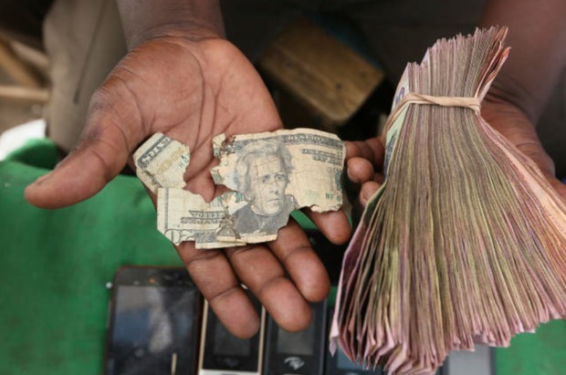 Đồng đô la Zimbabwe hoàn toàn mất giá vào năm 2009 trong bối cảnh lạm phát kỷ lục. Sau sự sụp đổ đó, người dân đành dựa vào đồng USD cho các giao dịch hằng ngày. Trớ trêu là nguồn cung tiền USD cũng khá hạn chế, nên người dân phải tận dụng đến cả tiền rách.