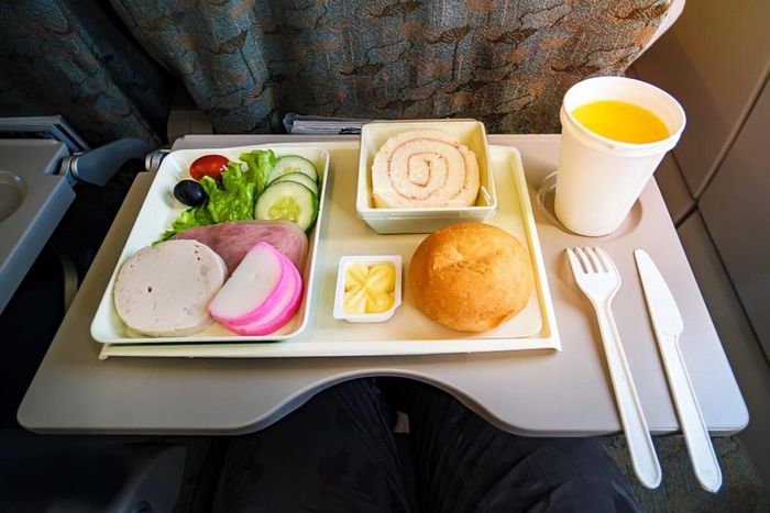 Bạn nên xem xét các lựa chọn món ăn trên chuyến bay đường dài. Đặt một bữa ăn đặc biệt (thường trong vòng 24 giờ sau chuyến bay), vì một số lý do quan trọng. Suất ăn đặc sản của các hãng hàng không thường có chất lượng tốt hơn suất ăn tiêu chuẩn và được phục vụ trước. Điều này rất quan trọng nếu bạn định ngủ trong chuyến bay. Đồ ăn nhẹ trên máy bay có nhiều muối và sẽ làm bạn mất nước. Đừng chỉ dựa vào đồ ăn nhẹ của hãng hàng không để giữ cho lượng đường trong máu của bạn ổn định trong suốt chuyến bay. Mua đồ ăn nhẹ tốt cho sức khỏe ngay tại máy bay khi bạn đi qua khu vực an ninh hoặc mang theo đồ ăn nhẹ dễ vận chuyển của riêng bạn. Nhắm đến các lựa chọn giàu protein như hạnh nhân, hỗn hợp đường mòn, bánh quy giòn bơ đậu phộng hoặc thanh protein. Giữ nước là vô cùng quan trọng. Khoang máy bay có độ ẩm thấp và không khí khô, vì vậy hãy đảm bảo cơ thể bạn đủ nước nếu bạn không muốn bị ốm trên máy bay.