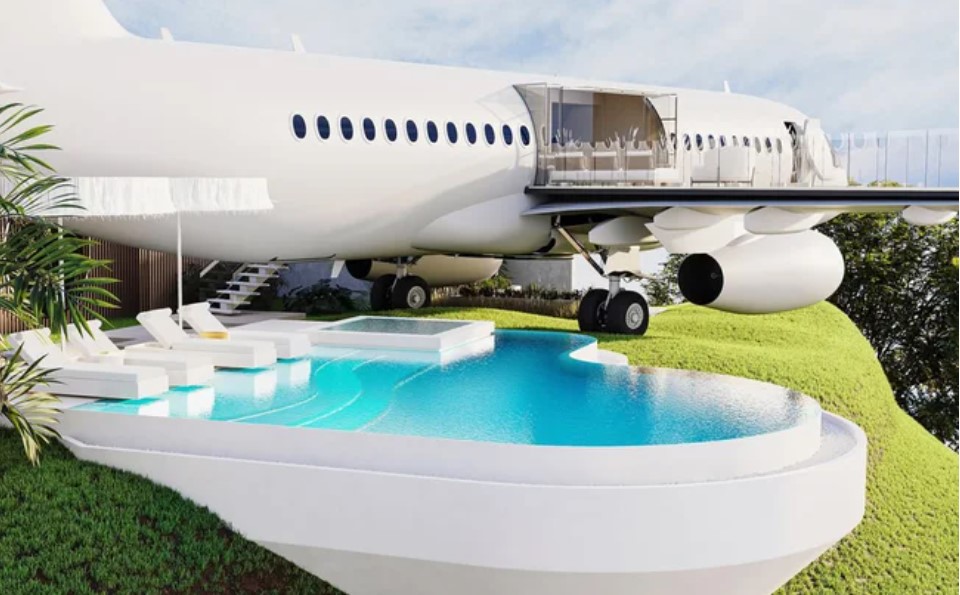 Một vài phi cơ không sử dụng đã được thiết kế lại thành nhà hàng, bảo tàng, quán cà phê và nơi tổ chức tiệc. Nhưng chiếc Boeing 737 cũ được biến tấu thành biệt thự xa hoa, nằm trên đỉnh vách đá bãi biển Nyang-Nyang tại đảo Bali (Indonesia) có lẽ là một trong những phi cơ được chuyển thể đẹp nhất tính tới nay.