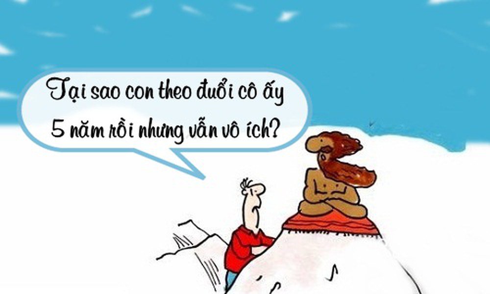 - Thưa ngài, con đã kiên trì theo đuổi cô ấy suốt năm năm trời. Vì sao đến nay cô ấy vẫn chưa đồng ý?