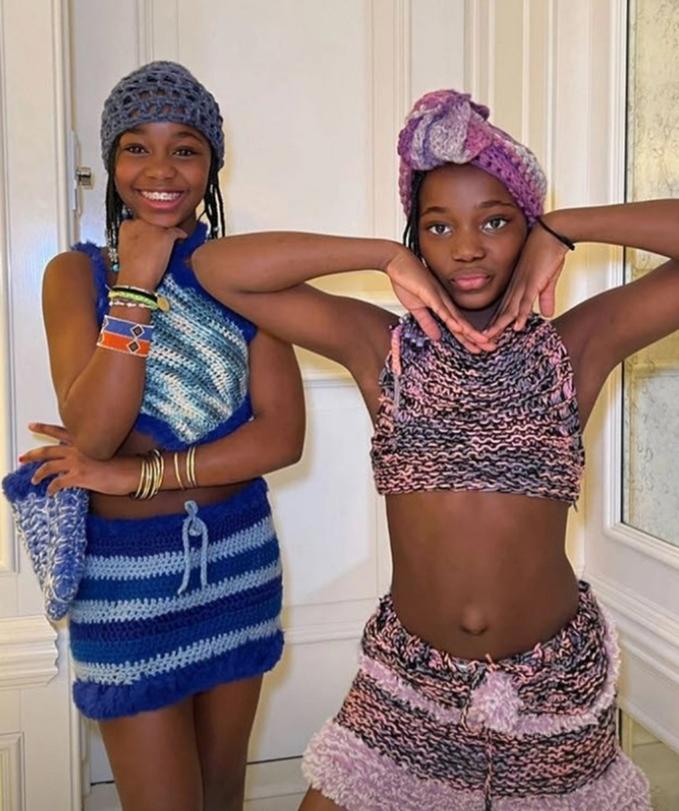 Estere và Stella Ciccone - cặp song sinh 10 tuổi của Madonna - đan crop top và váy ngắn cho bản thân.