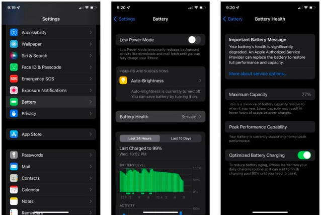 Nếu tình trạng pin iPhone của bạn thấp hơn 80%, bạn sẽ thấy một thông báo quan trọng về pin trong cùng một menu. Theo Apple, khi dung lượng tối đa giảm xuống dưới 80%, điều đó có nghĩa là pin iPhone của bạn đã xuống cấp nghiêm trọng và cần phải thay thế nó để khôi phục hiệu suất được quảng cáo.