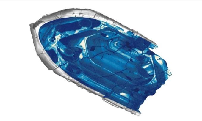 Mảnh tinh thể zircon màu xanh dương đẹp mắt có niên đại khoảng 4,4 tỷ năm là bằng chứng về mảnh vỏ Trái Đất lâu đời nhất.