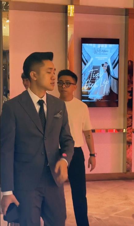 Đáng chú ý, vợ chồng con trai hệ thống phở nổi tiếng lâu đời ở Hà Nội Tân Một Cú - Mi Tóc Xanh cũng có mặt tham dự đám cưới. Cặp vợ chồng trẻ nhanh chóng lọt vào ống kính “team qua đường” tại sự kiện. Theo đó, cả hai diện trang phục giản dị nhưng vẫn gây được ấn tượng.