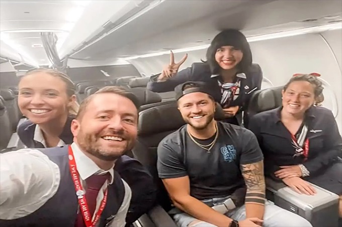 Stringer đă ghi lại video về hành tŕnh đặc biệt này và đăng lên tiktok, thu hút hơn 15,4 triệu lượt xem. Trong video, các tiếp viên hàng không vui vẻ tṛ chuyện, đùa giỡn với anh. Thậm chí họ trao đổi số điện thoại cho nhau. Mỗi khi phát loa thông báo theo quy định, họ sẽ nói thêm: "Vâng, Stringer, thông báo này chỉ dành cho anh".