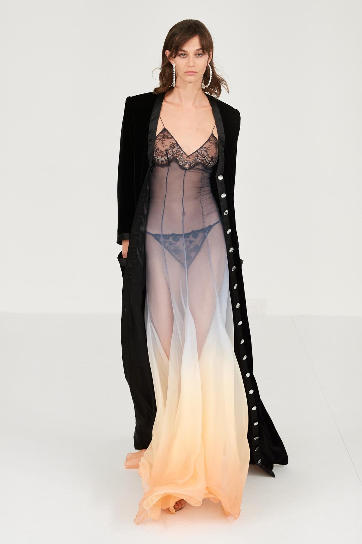 Alexis Mabille kết hợp đầm ngủ lụa mỏng với áo choàng dài.