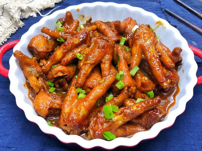 Với cách kho chân gà này, từng chiếc chân gà thấm đậm vị sốt, thơm ngon, ăn kèm cơm nóng rất tuyệt vời.
