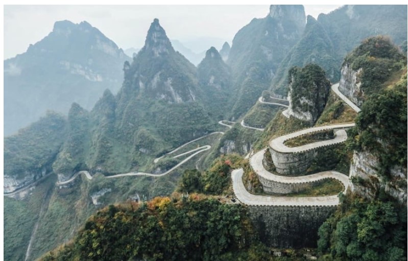 Nơi đây từng được tạp chí Dangerous Road coi là một trong những con đường nguy hiểm nhất trên thế giới. Bạn có thể tự lái xe máy qua những đường đèo khó khăn và leo lên "cổng trời" sau khi vượt qua 999 bậc thang. Tuy nhiên, nếu không tự tin vào khả năng lái xe, bạn cũng có thể di chuyển bằng cáp treo với 98 cabin có tổng chiều dài lên tới 7.455m.