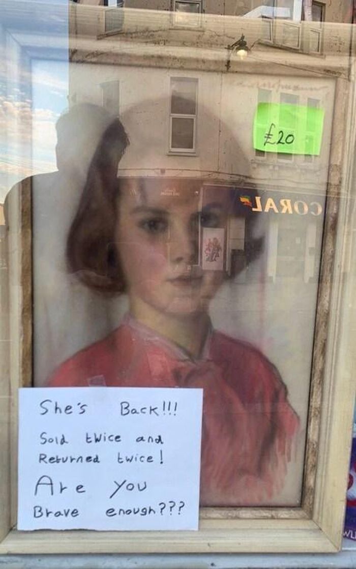 Tuy nhiên, mới đây, cửa hàng đã dán một tấm giấy lên bức tranh, trên giấy đề dòng chữ: "Cô bé đã lại quay về. Bức tranh này đã được bán đi 2 lần và cả 2 lần đều bị đem trả lại. Bạn có đủ dũng cảm để mua bức tranh này không?".