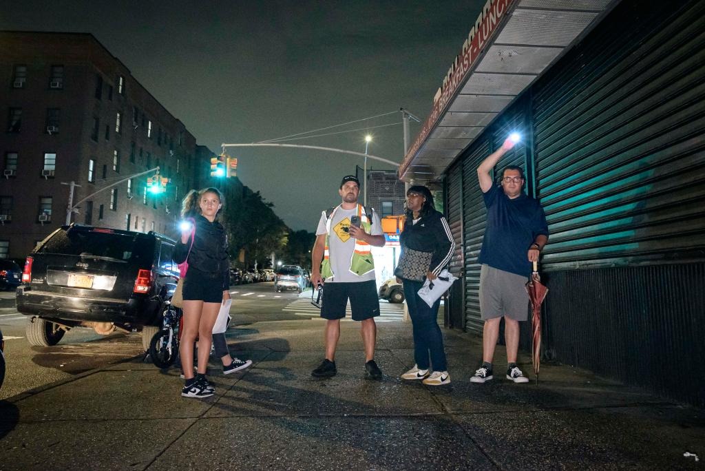 Kenny Bollwerk (thứ hai từ phải sang) đã vạch ra các tuyến đường để "tham quan chuột" vào đêm khuya ở Manhattan và Queens.