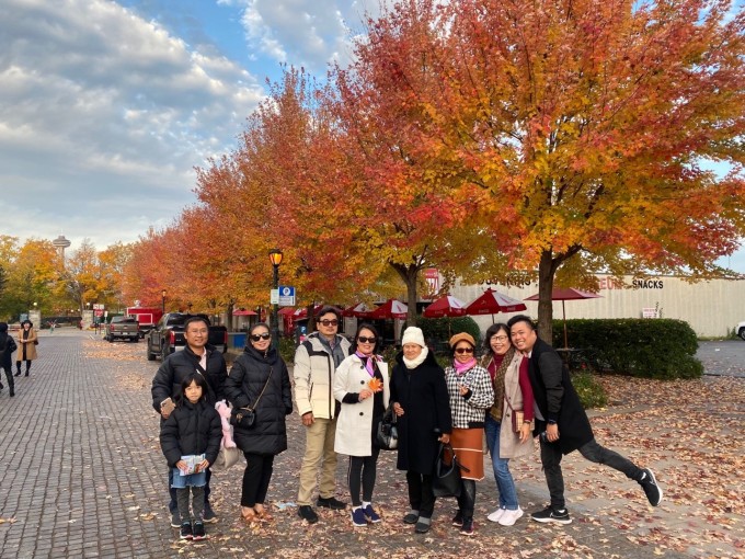 Du khách check-in con đường lá vàng tại Mỹ. Ảnh: Vigotour
