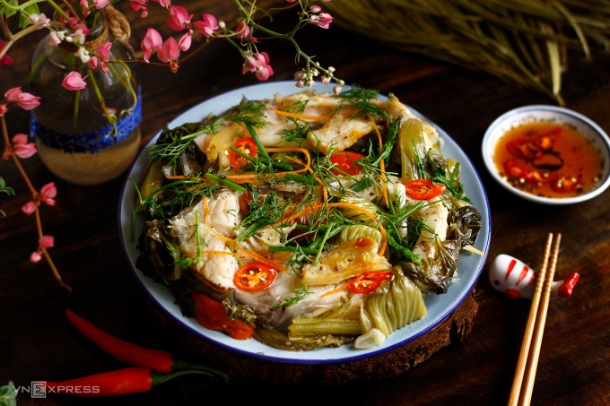 Cá chép mềm ngon, dưa chua thấm trọn vị từ cá, tóp mỡ, dậy mùi thơm hành lá, thì là. Món này rất hợp với tiết trời chuyển mùa của miền Bắc.