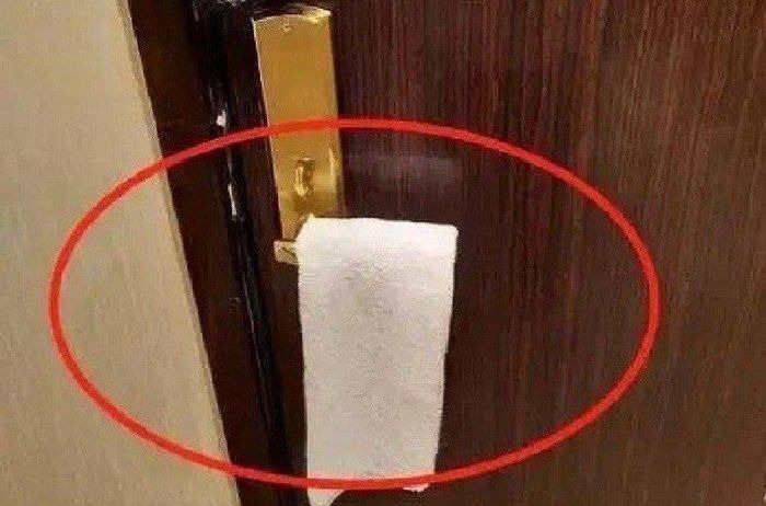 Nhà nghỉ, khách sạn là địa điểm lưu trú quen thuộc khi chúng ta đi du lịch hoặc công tác. Khi nhận phòng, lễ tân sẽ nhắc nhở khách kiểm tra vấn đề vệ sinh, tài sản, trang thiết bị trong phòng. Đôi khi, khách còn được dặn dò nên treo một chiếc khăn lên tay nắm cửa của phòng khách sạn.