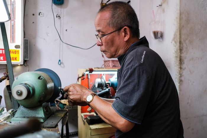 Nằm tận sâu cuối hẻm, Hùng Kềm - người đàn ông với hơn 30 năm làm nghề mài kềm cho con phố nail chia sẻ: "Gần đây, hẻm nail đông khách trở lại tôi cũng phấn khởi. Phần lớn kềm tại các tiệm ở đây đều do tôi mài, mỗi tiệm trung bình có khoảng 10 chiếc".