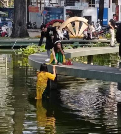 Mới đây, phát hiện một nàng thơ vì sống hết mình với cái gọi là đam mê, cũng ngựa ngựa tạo 7749 kiểu dáng bên hồ nước mà không may té xuống luôn. Còn đâu là áo dài với trang điểm xinh xắn, đành ngậm ngùi đi về rồi sang năm phục thù.