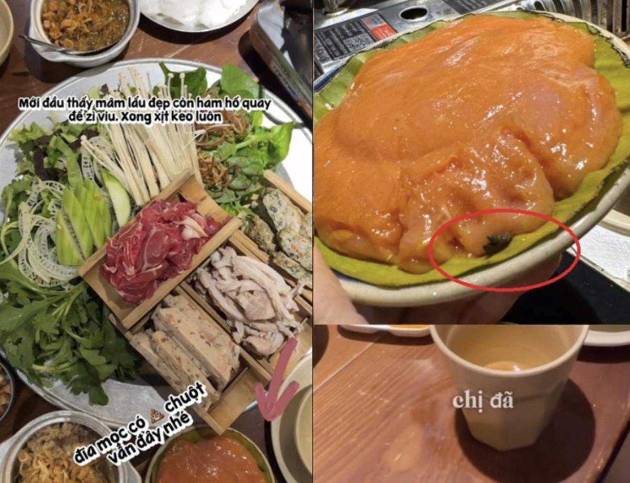 Một nồi lẩu riêu cua hấp dẫn với các loại đồ nhúng được bày biện ngay trước mắt, tuy nhiên khi nhìn sang đĩa mọc thì cả nhóm phát hiện ra một "vật thể lạ" dính ngay trên đĩa. Soi cận cảnh thì ai cũng tá hỏa, "vật thể lạ" ấy chính là "chất thải của chuột" đang nằm ngay ngắn trên đĩa mọc còn nguyên.