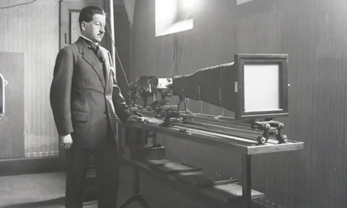 Edmond Locard sử dụng một thiết bị chụp ảnh vào thập kỷ 1920. Ảnh: Kho lưu trữ Lyon
