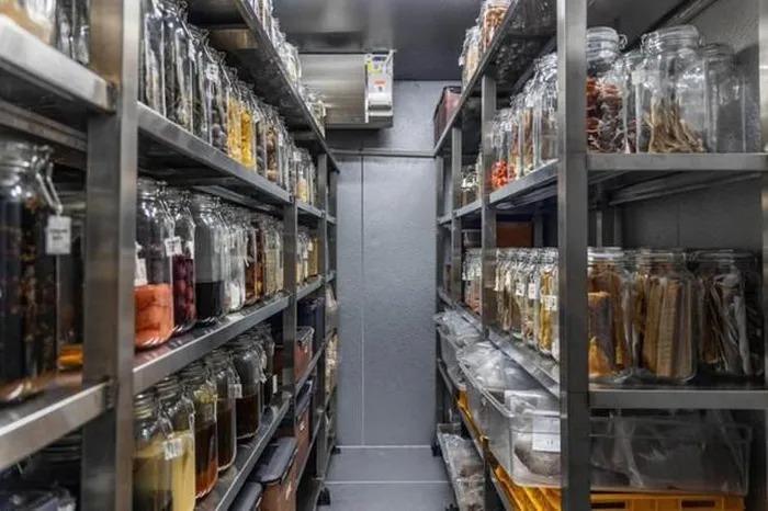 Tại nhà hàng Yun Seoul, ông Kim có một không gian bảo quản lạnh giống như phòng thí nghiệm, nơi ông lưu giữ hơn 500 nguyên liệu được dán nhãn theo năm sản xuất và nơi xuất xứ. Ảnh: Yun Seoul