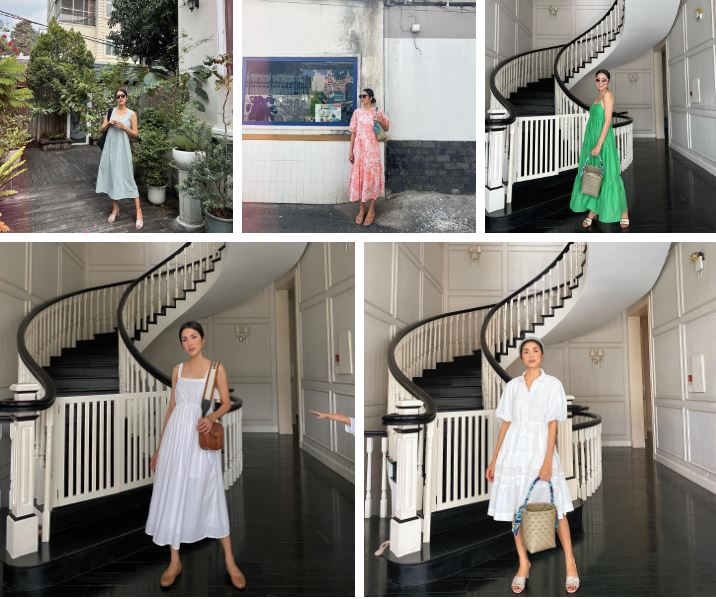 Phạm Thanh Hằng có phong cách diện váy rất ngọt ngào, trẻ trung. Mỹ nhân 41 tuổi biến hóa đa dạng với váy hai dây, váy hoa, váy cổ chữ V… Phạm Thanh Hằng hiếm khi chọn váy tối màu, thay vào đó, cô ưu tiên váy sáng màu hơn. Đây chính bí kíp giúp siêu mẫu kỳ cựu trẻ hóa phong cách hiệu quả.