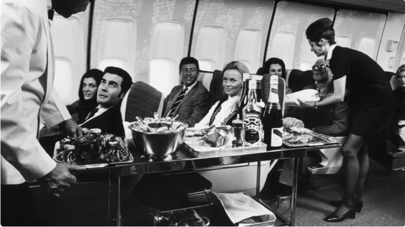 Việc phục vụ ăn uống trên máy bay giờ đã suy giảm nhiều giá trị so với thời kỳ huy hoàng, khi những món ăn được đặt trên những tấm khăn trải bàn màu trắng tinh tươm và các tiếp viên thậm chí còn đứng đánh trứng trực tiếp để phục vụ khách.