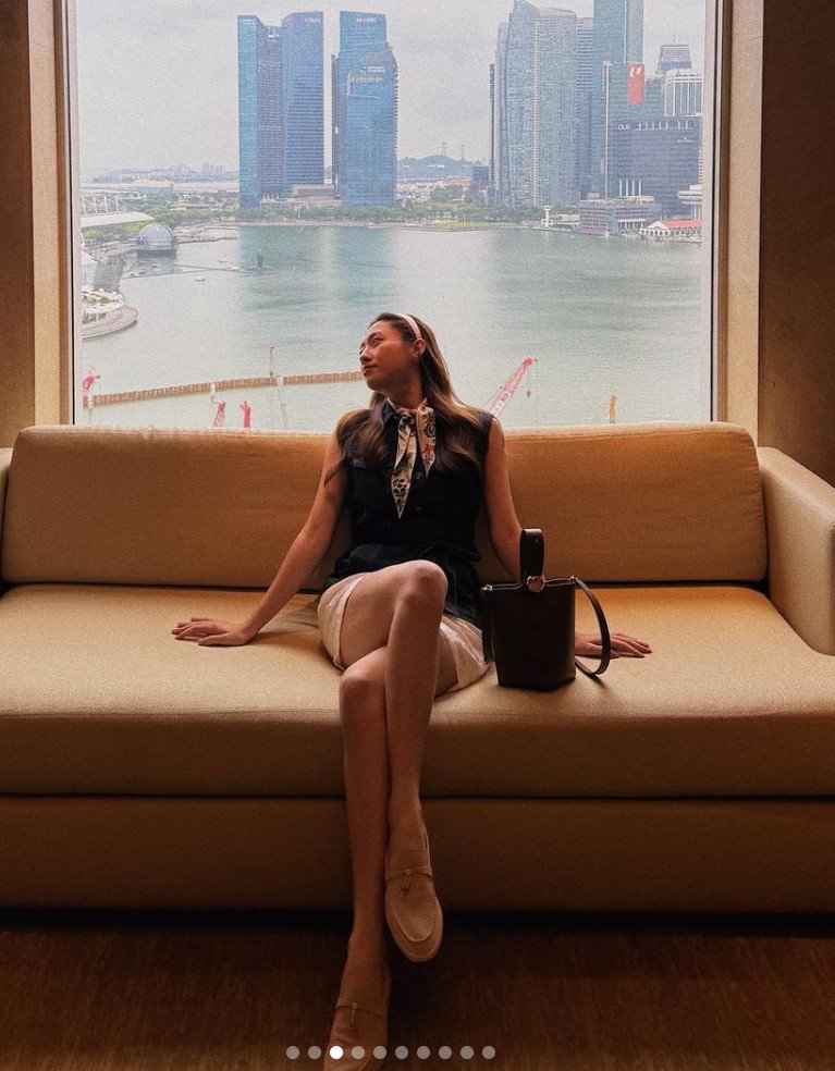 Ngoài ra, người đẹp thường xuyên có những chuyến du lịch, công tác nước ngoài. Xem qua những bức ảnh trên trang cá nhân, có thể thấy cô nàng khá chuộng những kiểu trang phục tôn dáng, nhất là quần short khoe đôi chân dài thẳng tắp.