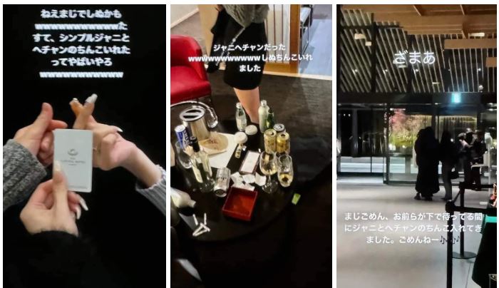 Những hình ảnh trong bài đăng trên Twitter "bóc mẽ" hai nam idol có hành vi "ăn chơi trác táng" khi tới Nhật Bản.