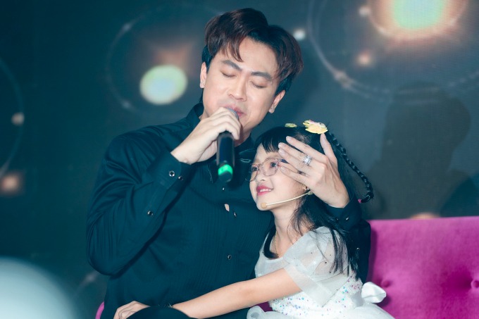Hồ Việt Trung bên con gái - bé Xí Muội - trong đêm nhạc. Ảnh: Lê Tuấn