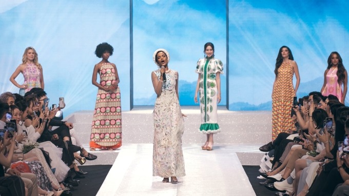 Tối 23/6, mỹ nhân tham gia Vietnam Beauty Fashion Fest mùa bảy, quy tụ nhiều sao quốc tế, trong nước. Ở phần kết bộ sưu tập Tơ hồng của nhà thiết kế Thủy Nguyễn, ca sĩ bước ra sân khấu, thể hiện ca khúc nổi tiếng.