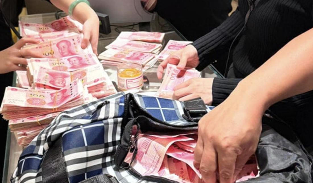 Hình ảnh nhân viên kiểm tiền do quý bà đăng tải. (Ảnh Xiaohongshu)