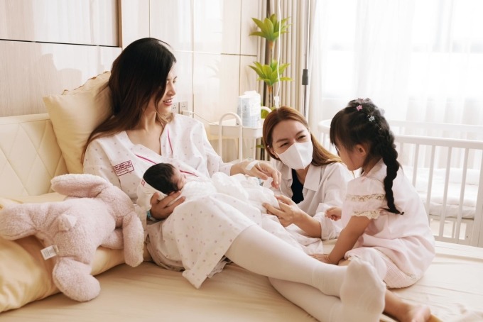 Ca sĩ kể thêm con gái đầu của Đông Nhi Winnie luôn tíu tít, lo lắng cho mẹ khi sinh em bé. "Đón em gái chào đời, cô nhóc 4 tuổi rất vui và không ngừng cưng nựng em", Phạm Quỳnh Anh cho biết.