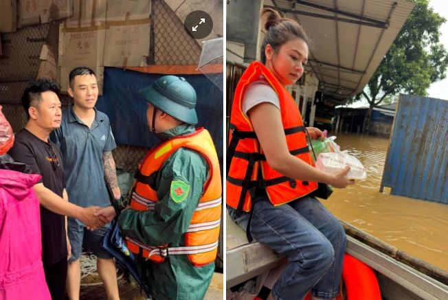Trong khi đó, nữ diễn viên Kiều Anh cùng ê-kíp đi thuyền tới nhiều địa điểm khác nhau của Thái Nguyên để gửi thực phẩm, điển h́nh là ḿ tôm cho người dân. Nam ca sĩ Yan Bi cùng công ty của anh trai tiếp nhận nhu yếu phẩm gồm lương khô, nước suối, thịt hộp, xúc xích, đèn pin, áo mưa, bếp ga mini, áo phao… vào 8h tới 20h hàng ngày tại nhiều địa điểm khác nhau ở Hà Nội sau đó sắp xếp xe và nhân sự đưa trực tiếp đến nơi bà con đang cần nhất.