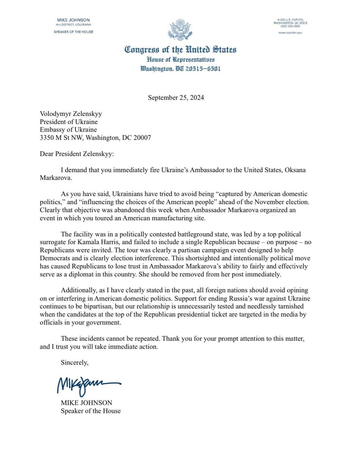 Chủ tịch Hạ viện Mike Johnson mới gửi thư cho TT Zelenskyy đề nghị ngay lập tức