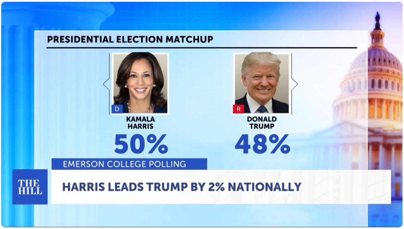Vào cuối tháng 8, vào khoảng thời gian diễn ra Đại hội toàn quốc của đảng Dân chủ, Harris dẫn trước gần 2 điểm.