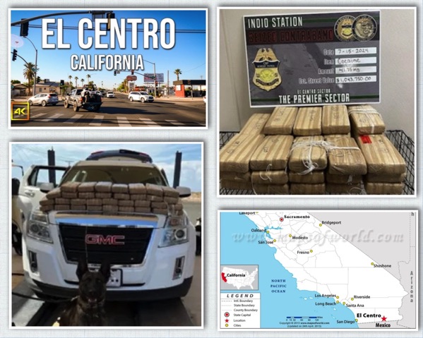 Các nhân viên Tuần tra Biên giới Hoa Kỳ được phân công đến Khu vực El Centro đă bắt giữ hai công dân Hoa Kỳ đang cố gắng buôn lậu 92 pound cocaine.