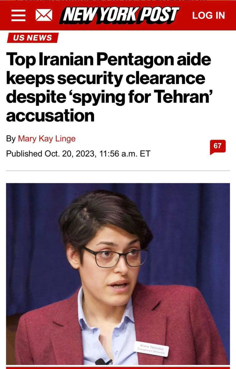 Một nhân viên cấp cao của Ngũ Giác Đài, Ariane Tabatabai, một người Mỹ gốc Iran, được cho là người đã làm rò rỉ các tài liệu mật nêu chi tiết về sự chuẩn bị quân sự của Israel để tấn công Iran.