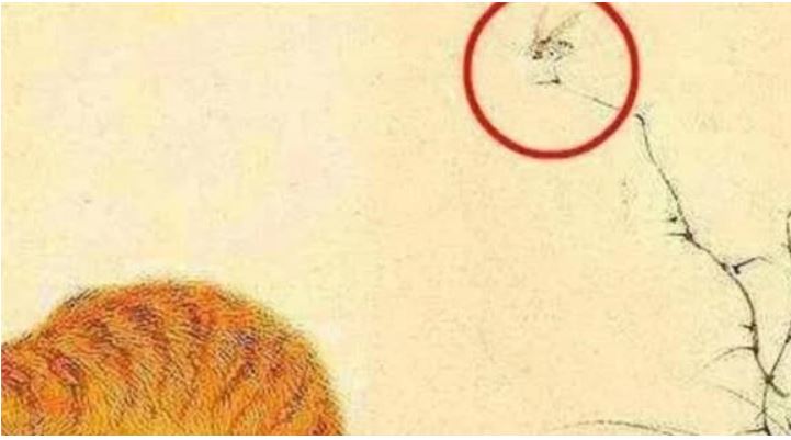 Đặc biệt, khi chú ý đến góc trên bên phải của bức tranh, một chấm mực được phát hiện chính là hình ảnh của ong dại đang đe dọa con hổ. Sự thật đằng sau bức tranh là con hổ mạnh mẽ đã vô tình lạc vào lãnh thổ của ong dại và bị chúng tấn công không thương tiếc, khiến nó không còn sức mạnh nào để phản kháng, chỉ còn biết cúi đầu mà đi.