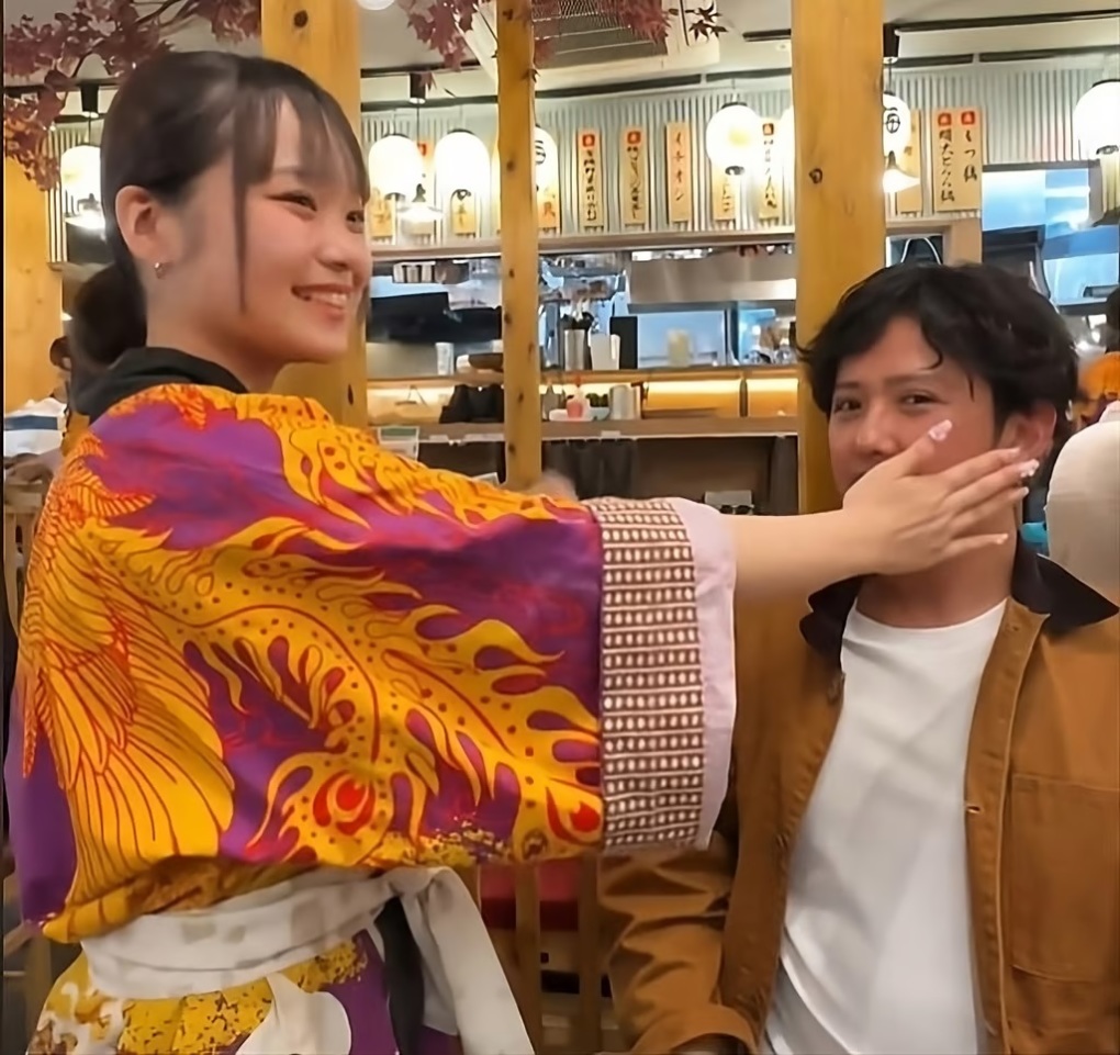 Một khách hàng của Yotteba chi 600 yen để được nhân viên nữ cho "ăn tát". Ảnh: TikTok/Salty_Gourmets