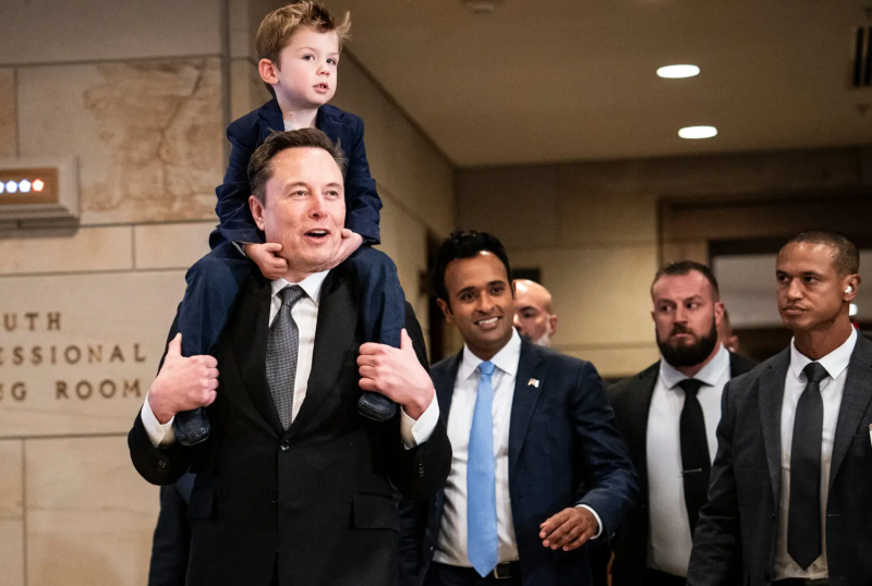 Doanh nhân Elon Musk, cùng con trai, và ông Vivek Ramaswamy tại Điện Capitol trong tháng 12/2024. Ảnh: New York Times