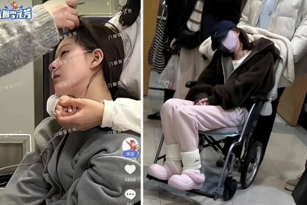 Hình ảnh Triệu Lộ Tư ngồi xe lăn tại bệnh viện gây xôn xao dư luận. (Ảnh: Weibo).