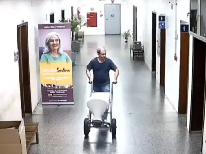 Camera an ninh trong văn phòng cũ của Janaina Lima, quan chức hội đồng thành phố Sao Paulo, ghi lại hình ảnh trợ lý của bà này tháo một toilet và hai bồn rửa mặt mang đi, sau khi nhiệm kỳ của bà kết thúc vào cuối năm 2024.