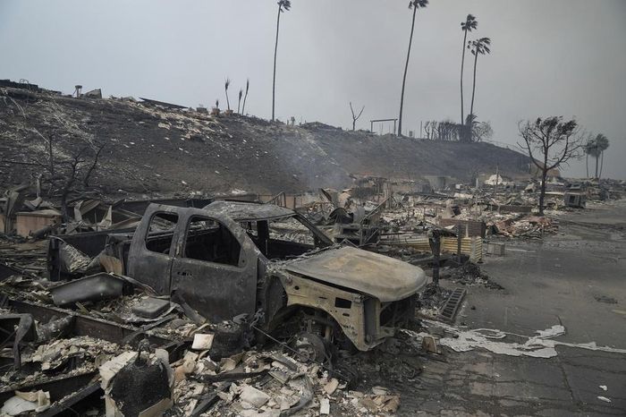 Cháy rừng tàn phá khu phố Pacific Palisades của Los Angeles, California, Mỹ vào ngày 8 tháng 1 năm 2025. (Ảnh do AP cấp bản quyền, không phát hành lại)