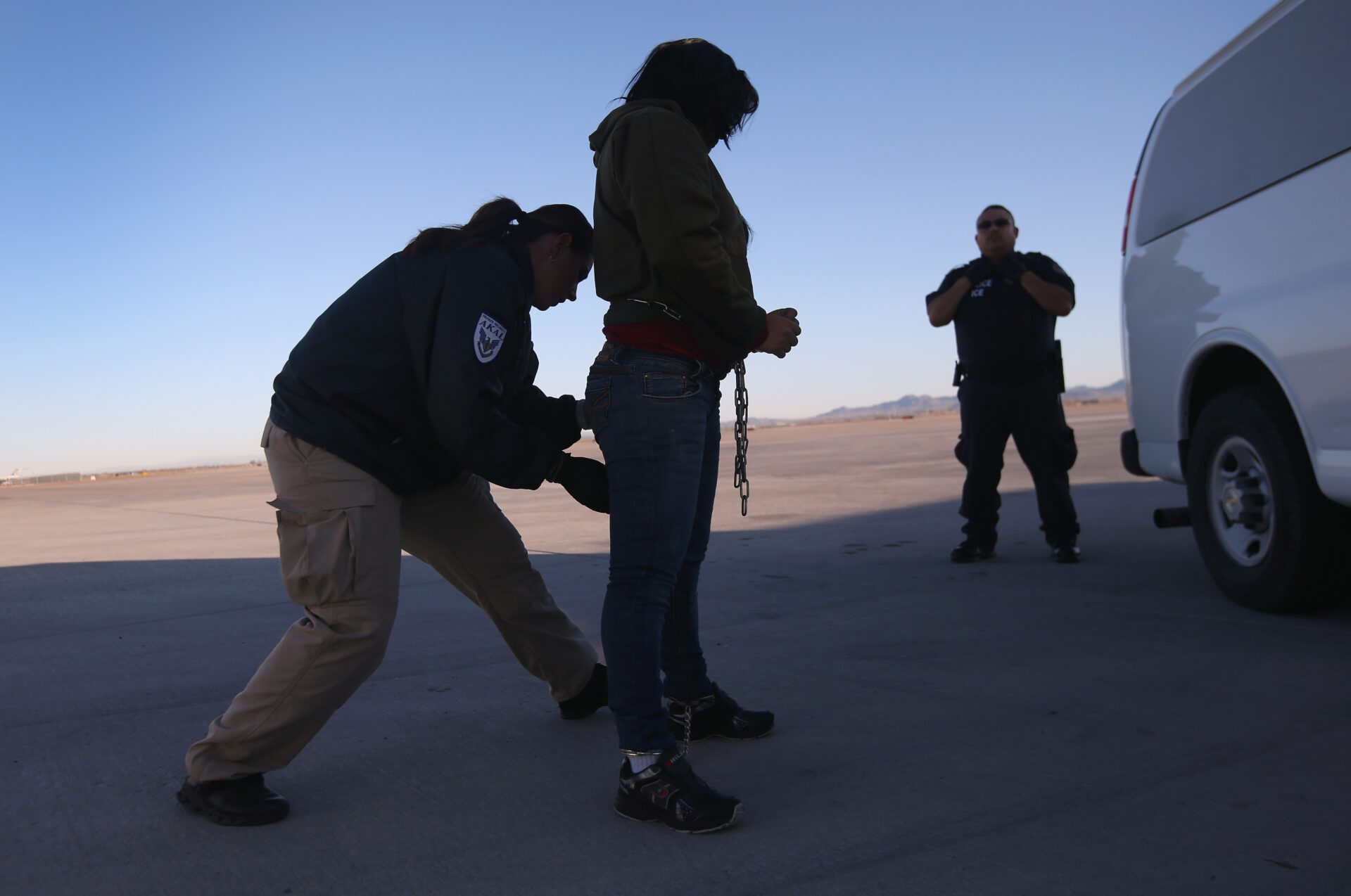 Cảnh sát di trú ICE xét người một di dân Honduras trước chuyến bay trục xuất về San Pedro Sula, Honduras ngày 28 tháng 2/2013 ở Mesa, Arizona. (Ảnh minh họa: John Moore/Getty Images)