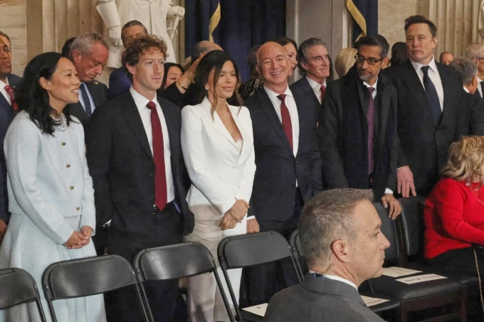 Sự kiện nhậm chức của Tổng thống Trump có sự tham gia của một số người giàu nhất thế giới, gồm Elon Musk của Tesla, Jeff Bezos của Amazon, Mark Zuckerberg của Meta và Bernard Arnault của LVMH.