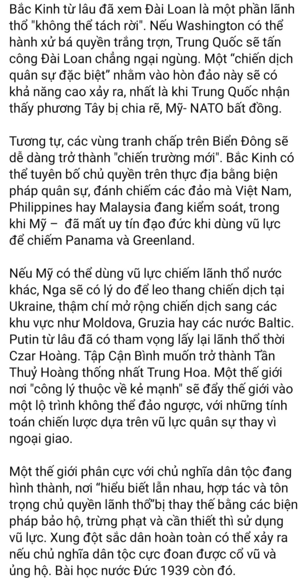 Vấn đề tổng thống Trump đánh thuế nhập khẩu Canada , Mexico 25%, và Trung Quốc 10%, không phải cá lớn nuốt cá bé theo trường phái Thucydides như luận điệu của thằng ku thiên tả trong h́nh ở dưới lư sự. Tui cũng dám khẳng định, rằng : KHÔNG BAO GIỜ CÓ CHIẾN TRANH THẾ GIỚI THỨ 3.