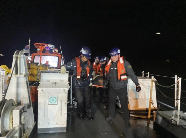 Lực lượng bảo vệ bờ biển Hàn Quốc thực hiện công tác cứu hộ thuyền viên trên tàu chìm ngày 9.2