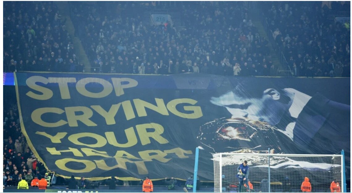 Trước trận đấu lượt đi thuộc vòng play-off Champions League, khán đài Etihad giăng lên một biểu ngữ khổng lồ với dòng chữ "Stop crying your heart out" (tạm dịch: “Đừng khóc nữa đi”), ám chỉ việc Vinicius Jr trượt Quả bóng vàng vào tay Rodri. Họ nghĩ rằng đó là cách châm chọc hoàn hảo, nhưng quên mất rằng đang chọc giận một trong những cầu thủ nguy hiểm nhất thế giới.