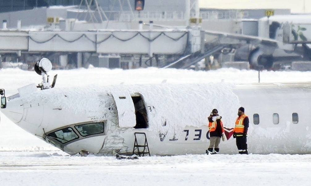 Chiếc máy bay CRJ900 của Delta Air Lines, khởi hành từ thành phố Minneapolis, bang Minnesota của Mỹ, gặp nạn khi hạ cánh xuống sân bay Toronto, Canada, hôm 18/2. Trong lúc đang hạ độ cao chuẩn bị đáp đất, chiếc máy bay đổ nghiêng sang phải rồi lật ngửa và trượt trên mặt đất.